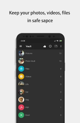 ☆Vault: Through the AES encryption algorithm, encrypt the content that you do not want to share with others, and the file format, size without any restrictions, but also support taking pictures and recording videos.