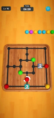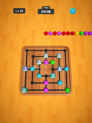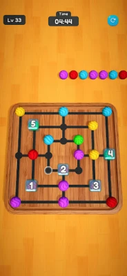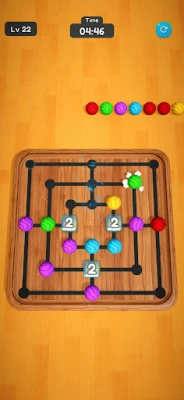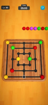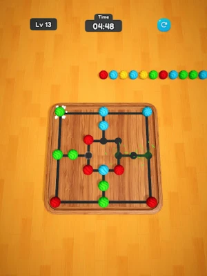 The goal is to strategically align three balls of the same color. When matched, the balls break and free up space on the board. Unlike traditional Morris where you remove an opponent’s piece, here the focus is on color-matching strategy combined with spatial movement, creating a unique blend of board-game tactics and casual puzzle gameplay.