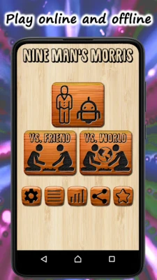 Play online or offline traditional game Nine Men's Morris (Mills).