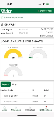 The Vault allows more data to be associated with each joint report that's collected on your jobsite. The easy-to-use interface quickly shows the number of jobs associated with your account and the number of joints recorded on each individual jobsite. Records can be sorted by operator, machine used, job and more to gain greater insights into your operations.